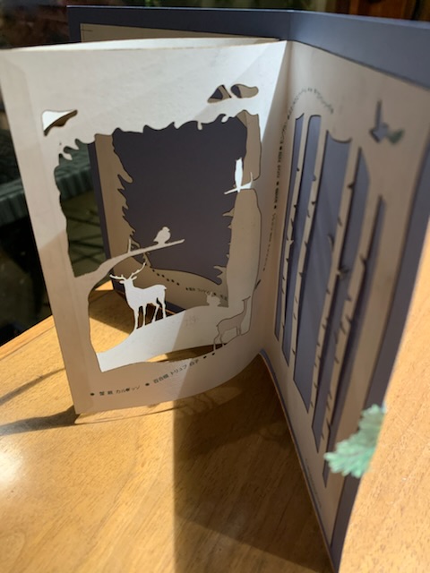 席に着くとこんなメニュー表が置いてあります。メニューには飲み物については書いてなく、料理名のみ載っています。ノンアルとアルコールで内容違いますもんね。今回は冬のメニューで、雪の森からの贈り物というテーマのようです。季節ごとにメニューが変わるのだそう。ちなみにオモコロさんのレポは秋のメニューらしいですよ…!