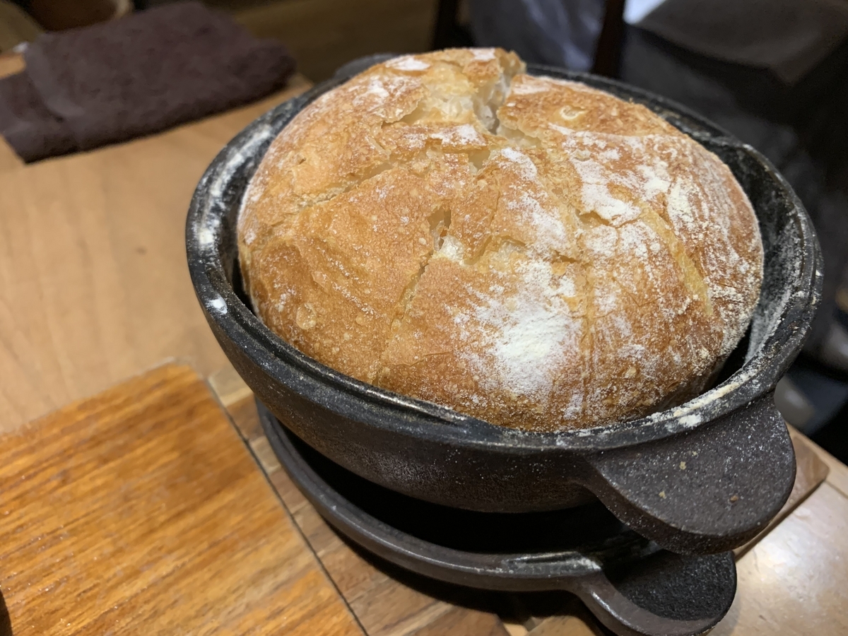 同行者に「こういう焼いたパンはなかなか食べないですね」と言われて、この人はパンにレンジもトースターもフライパンも使わない、パン焼きアンチの人なのかと思ったのですが、普通に焼きあがったばかりのパンを食べる機会がないですよねという話でした。美味しい料理に脳をフル活用しているせいで言語能力に支障が出始めたみたいです。